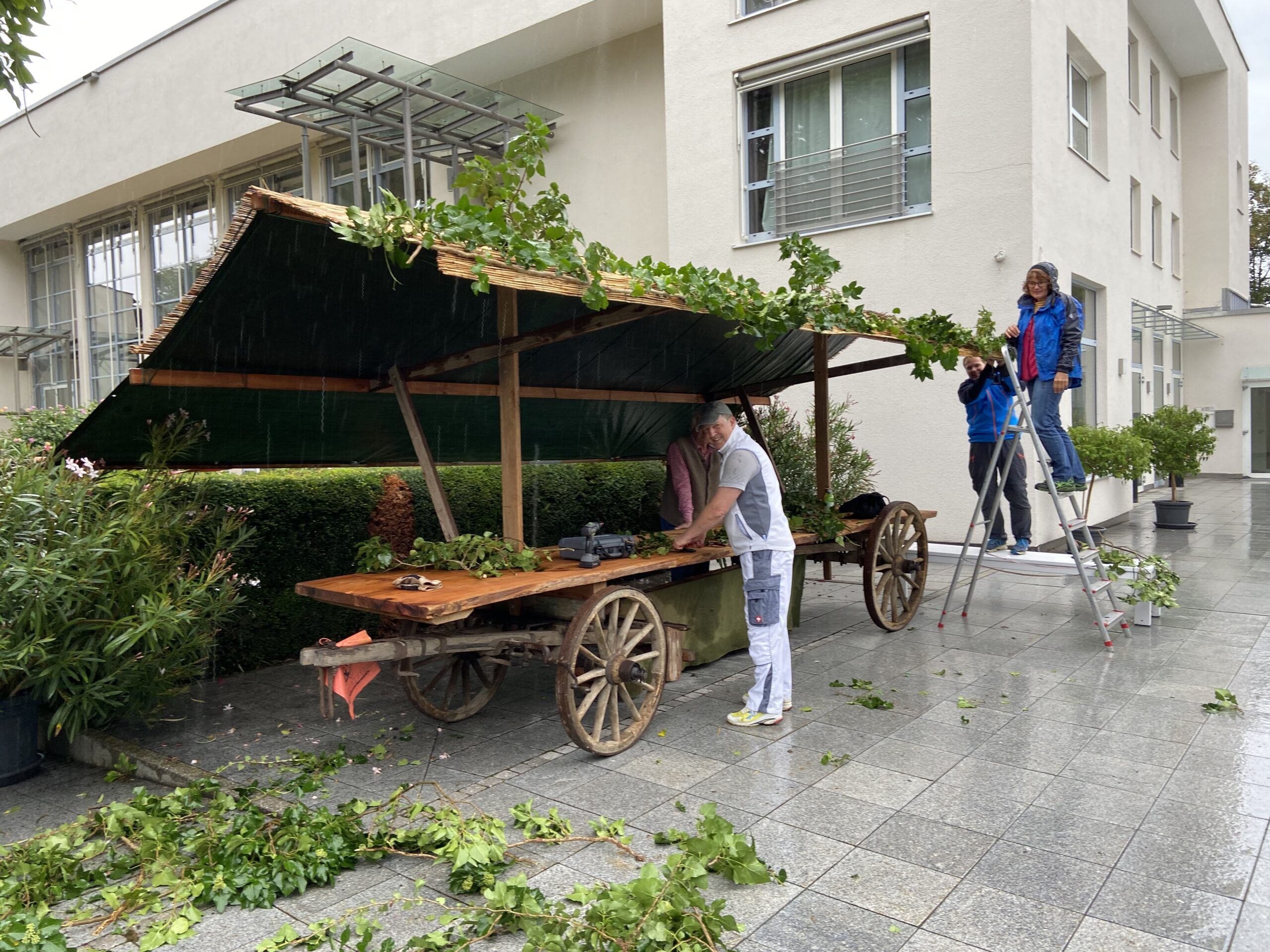 Bei strömenden Regen trafen sich viele braven Helfer um den Wagen vorzubereiten