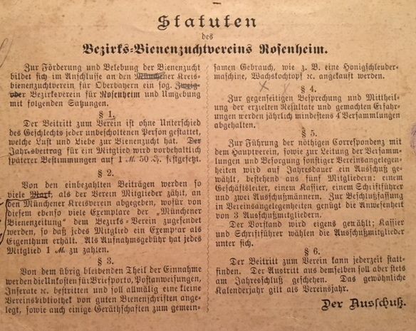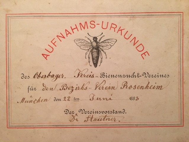 Der heutige Imkerverein Rosenheim und Umgebung wurde am 17.Juni 1883 in Rosenheim gegründet und am 22. Juni 1883 in den oberbayrischen Kreis Bienenzucht Verein eingetragen.